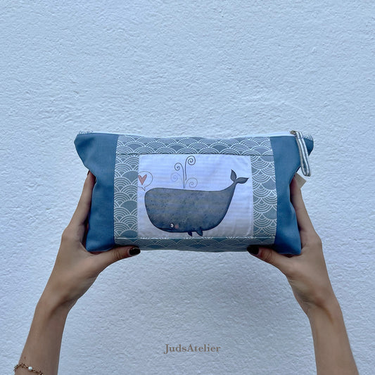 Neceser básico con estilo marinero e ilustración de ballena